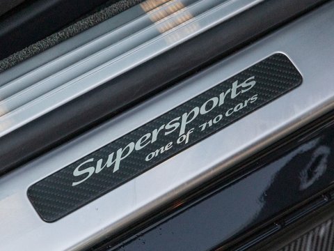 With 700 bhp and 750 lb ft of torque, this Supersports is one of the fastest GT cars money can buy. Building on the previous generations example the Supersports is 40 kg lighter than the standard car thanks largely to the carbon ceramic brakes and the optional titanium exhaust used on the GT3-R. Other noticeable differences include the carbon fibre trim, new front bumper which includes a carbon fibre splitter and the rear aerodynamic diffuser. Brightware has turned to gloss black and features on the front grille, rear bumper, door handles and window surrounds, while the headlamps and rear lights are dark tinted. Side sill extension and bonnet vents are finished in carbon fibre, the front wing vents are gloss black and so are the rifled exhaust pipe finishers. Supersports badging and 21" alloy wheels in gloss black with machined surfaces complete the dramatic performance focused look. Step inside and you are greeted with an alcantara lined interior with diamond quilting as well as embroidered Supersports emblems on the seat headrests. Overall, the Supersports is a very special car and being 1 of 710 examples worldwide means it is also highly exclusive.
