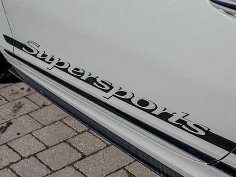 With 700 bhp and 750 lb ft of torque, this Supersports is one of the fastest GT cars money can buy. Building on the previous generations example the Supersports is 40 kg lighter than the standard car thanks largely to the carbon ceramic brakes and the optional titanium exhaust used on the GT3-R. Other noticable differences include the carbon fibre trim, new front bumper which includes a carbon fibre splitter and the rear aerodynamic diffuser. Brightware has turned to gloss black and features on the front grille, rear bumper, door handles and window surrounds, while the headlamps and rear lights are dark tinted. Side sill extension and bonnet vents are finished in carbon fibre, the front wing vents are gloss black and so are the rifled exhaust pipe finishers. Supersports badging and 21" alloy wheels in gloss black with machined surfaces complete the dramatic performance focused look. Step inside and you are greeted with an alcantara lined interior with diamond quilting as well as embroidered Supersports emblems on the seat headrests. Overall, the Supersports is a very special car and being 1 of 710 examples worldwide means it is also highly exclusive.