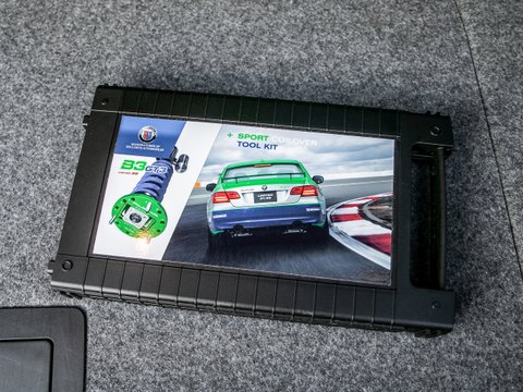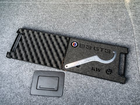 This car takes the already blisteringly fast Alpina B3 S Bi-Turbo and uses race technology and components to make this a fully track capable road car. The engine itself remains largely unchanged producing an ample 408hp from a bi-turbo straight-6 and the legendary torque levels for which Alpina’s turbocharged engines are acclaimed. As well as rapid acceleration (0-62mph in 4.5 seconds) the B3 GT3 has the stopping power to match. A braking system comprising of 6-piston front and 4-piston rear fixed calipers coupled with larger grooved discs, provides minimal fade with maximum driver feel. From the exterior the GT3 features a carbon fibre aerodynamics package consisting of a front splitter, end plates and a clever rear spoiler which increases downforce whilst leaving drag unaffected. Suspension has been totally overhauled using race-bred coilovers, offering a sufficiently comfortable road biased set-up, but also 12-way adjustable compression rates and 18-way adjustable rebound rates for the track (tools included).