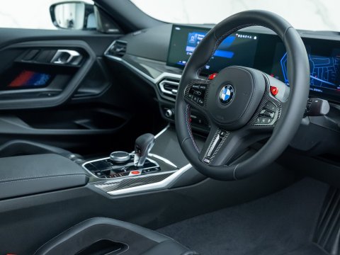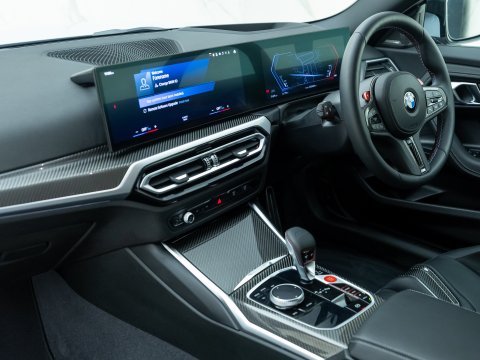 The interior has had a dramatic update over the outgoing M2, with the introduction of a 12.3-inch digital cockpit alongside a 14.9-inch central display, a refresh to the overall layout and trim and a choice between sporty comfort seats, or the optional carbon fibre buckets which are included as part of the M Race Track Package. Alongside this comes carbon fibre interior trim, a carbon roof and the M Driver’s Pack which increases the top speed to 180mph. The rear of the cabin provides plenty of space for two adults, with the materials and quality being retained from the front and climate vents accessible to rear passengers.