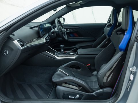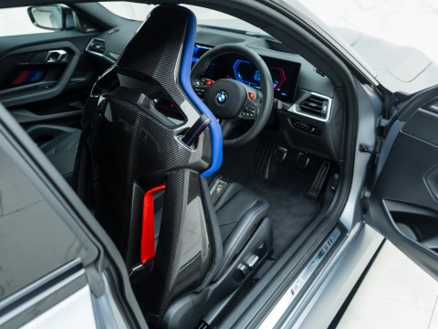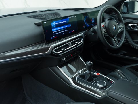 The interior has had a dramatic update over the outgoing M2, with the introduction of a 12.3-inch digital cockpit alongside a 14.9-inch central display, a refresh to the overall layout and trim and a choice between sporty comfort seats, or the optional carbon fibre buckets which are included as part of the M Race Track Package. Alongside this comes carbon fibre interior trim, a carbon roof and the M Driver’s Pack which increases the top speed to 180mph. The rear of the cabin provides plenty of space for two adults, with the materials and quality being retained from the front and climate vents accessible to rear passengers.
