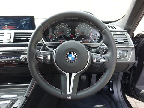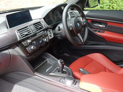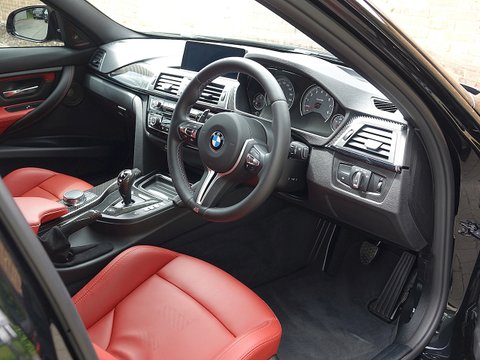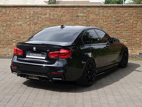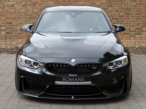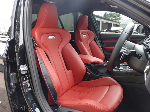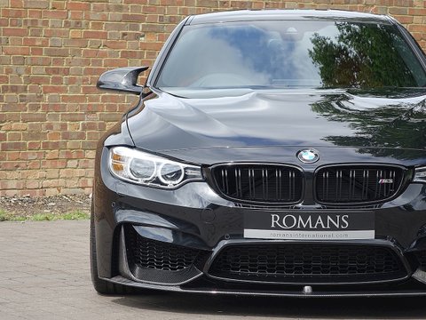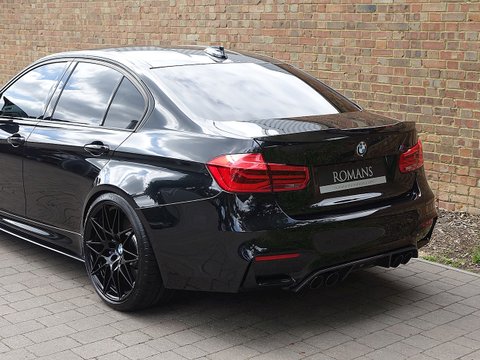 Romans are delighted to offer this spectacular 2017/17 BMW M3 Competition Pack for sale presented in 'Black Sapphire' Metallic with Sakhir Orange Extended Merino Leather Interior. This 1 owner example comes with a big specification including the M Performance Body Kit, Carbon Fibre Interior Trim and a whole lot more. Furthermore, this comes with the added benefit of a Full Paint Protection Film (PPF) applied to the whole car by Topaz Detailing. Finally, this car is supplied with BMW's Service Package Until 2020 and BMW Manufacturer's Warranty until March 2020.The M3 is and always has been the benchmark amongst the super saloon cars and the Competition Package improves the performance even further. The competition package means the car gets more power by 19 bhp from 431 bhp to 450 bhp, reduced 0-62 mph time by 0.1 seconds to 4.0 seconds as well as updated adaptive M Suspension, new springs, dampers, anti-roll bars and reconfigured driving modes. Cosmetic changes include the exclusive forged 20" M Light Star Spoke Alloys, M Sports Exhaust system and high gloss black finish to the side window trims, window recess finishers and BMW kidney grilles, the side gills and the model badge on the tail.With its fantastic chassis aimed for precision handling on great roads as well as great compliance on bumpy roads; the M3 Competition Pack is renowned to be the perfect daily driver. We believe this car to be one of the best-looking examples we have seen with the Black Sapphire Metallic, Black M-Star Wheels and the Carbon Fibre optional extras all contrasting beautifully with the Sakhir Orange leather interior. This car has incredible road presence and will sure turn heads where ever it goes.
