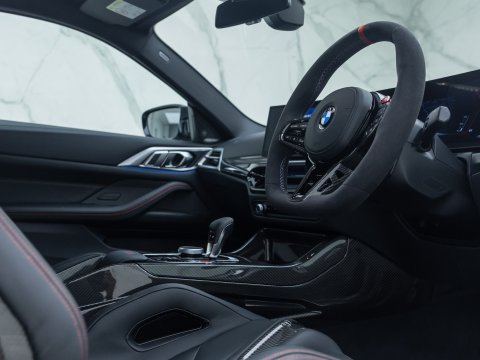 The CS stands out with lightweight materials like a carbon fiber roof, bonnet, and interior trim, helping shave weight for improved agility. Unique styling elements, including exclusive wheels, CS badging, and Laserlight yellow DRLs, give it an aggressive and distinctive look. With track-tuned suspension, sharper steering, and a revised exhaust note, the M4 CS delivers exhilarating driving dynamics without sacrificing comfort or tech found in a daily driver. Production is limited, making it a coveted choice for enthusiasts.