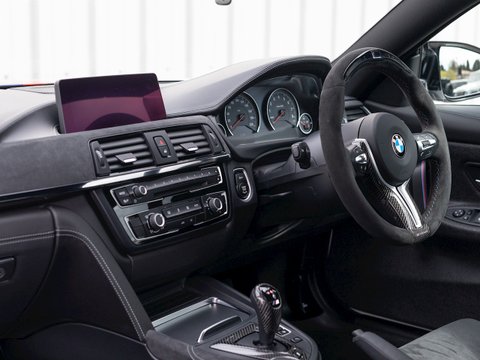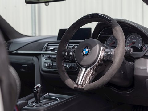 The BMW M4 DTM Champion Edition was produced to celebrate the success of the DTM driver Marco Wittmann, who secured the 2016 driver’s title at the season finale at the Hockenheim ring. A design following that of DTM racing cars and limited production numbers render the BMW M4 DTM Champion Edition as a high-performance coupe honed for the track. The interior features M Carbon Bucket Seats wrapped in black Merino leather and alcantara. The M Performance Steering Wheel is also trimmed in alcantara, as well as the centre console armrest and dashboard trim. The M4 DTM features a half roll cage which sits behind the front seats and lightweight composite door cards – this is a stripped down, track focused coupé. The DTM features the same innovative water injection and cooling system found in the BMW M4 GTS and an increased power output of 493bhp with 600Nm of torque. The 3-way coilover suspension allows for fully adjustable rebound and damping settings to suit your preference.