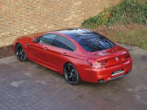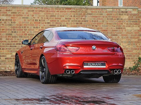 Ā Romans are proud to offer this stunning 2014/64 used BMW M6 Gran Coupe for sale presented in 'Sakhir Orange' with Black Merino Leather.The BMW M6 Gran Coupe is a four door coupe/saloon that slots between the M6 coupe and M5 saloon. It's the direct rival to the Mercedes CLS 63 AMG and the Audi RS7. Producing a staggering 552bhp and 502lb ft to the rear wheels via a seven-speed dual clutch transmission and active limited slip differential; the Gran Coupe accelerates from 0 to 62mph in just 4.2 seconds and reaches a top speed of 155 mph.The M6 Gran Coupe represents the best of the brand's power/, style and luxury in a fantastic package. It's more practical than the M6 convertible and coupe and more stylish than the M5 saloon. This beautiful 1 owner example comes with a lovely specification and is supplied with the remaining balance of BMW manufacturer's warranty until September 2017.