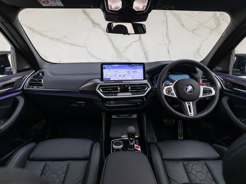 Revised for the 2022 model year, the X3M Competition receives updated styling and an increase in performance. 503 bhp is produced from the 3.0L Twin-Turbo Inline 6 with an increased torque figure by 50 Nm for more low-end grunt. Despite mostly using the same engine, the crankshaft from the G80 series M3 and M4 has been adopted to reduce weight and friction. Other developments have been made in order to allow the engine to perform better when under load, like on a track for example. The figures support its track competence, with a 0-62mph time of only 3.8 seconds and paired with the M Sports Exhaust that comes as standard, it also sounds the part. The updated styling includes a new M specific rear spoiler, larger diffusers and more aggressive styling features. The redesigned rear LED taillights complete the updated and punchy look, perfectly complimenting the performance on offer.