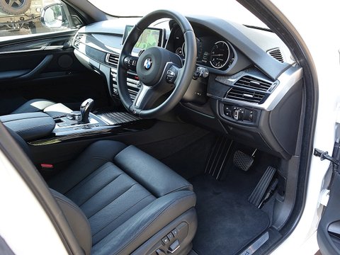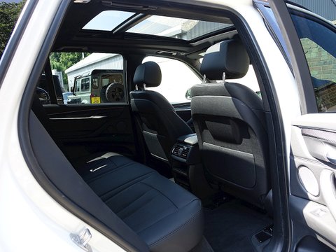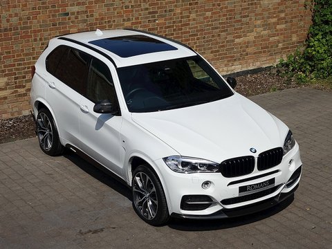 Romans are pleased to offer this stunning 2016/16 BMW X5 M50d for sale presented in 'Alpine White' with Black Dakota Leather. This 1 owner vehicle comes with a fantastic specification including the M Performance Kit that contains a Carbon Fibre Front Splitter, Carbon Fibre Rear Diffuser, Carbon Fibre Aero Blades and so much more. A fine example that comes supplied with BMW Manufacturer's Warranty until March 2019.The BMW X5 M50d benefits from the unique expertise of BMW M engineers, with a special fine-tuned powertrain, suspension and steering system. The end result is an automobile that offers an exhilaration combination of sheer dynamism, comfort and everyday usability.