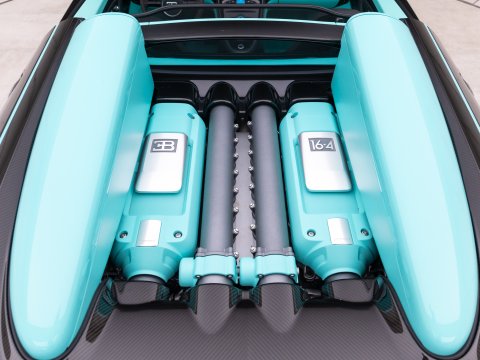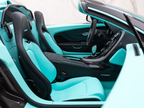 Furthermore, the Vitesse features redesigned air scoops that provide air intake for the engine and roll over protection. For the Vitesse, Bugatti developed a new roof spoiler that significantly reduces the sound of wind and turbulence in the interior cabin. In comparison to the standard Grand Sport, the Vitesse produces nearly 200bhp more, pushing the total output to 1,184 bhp. This is made possible with four larger turbochargers and intercoolers, reinforced components of the drivetrain and recalibrated seven-speed dual clutch gearbox. Finally, just like the Super Sport, the Vitesse uses a full-carbon fibre monocoque, with beauty and performance in abundance, there is no other car quite like this.
