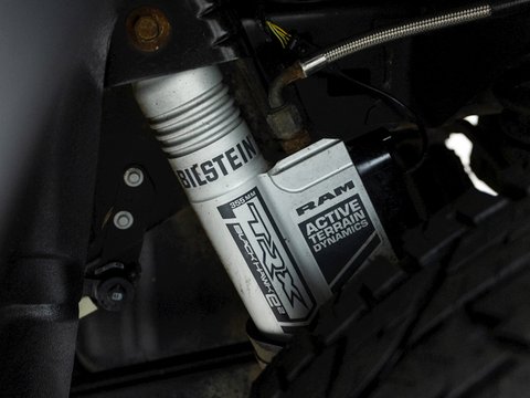 Under the hood is a ludicrous 6.2-litre, supercharged V8 engine lifted from a Hellcat, which, alongside an 8-speed automatic transmission and permanent all-wheel drive, helps shift the truck from 0-62 in a very impressive 4.5 seconds. The engine also produces just under 700bhp and 650lb/ft of torque which comes in handy for more spirited drives. Bilstein adaptive dampers come as standard with the TRX and improve the ride quality immensely. Various drive modes will quickly adapt the suspension settings appropriately for the terrain, whether itās sand, mud or water.