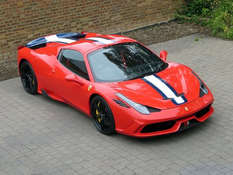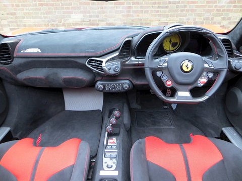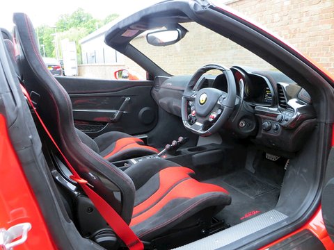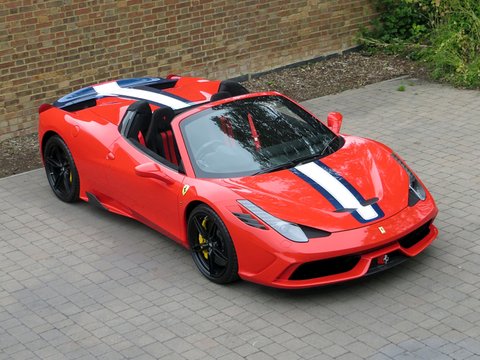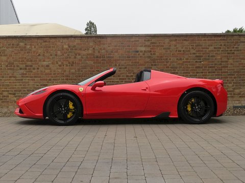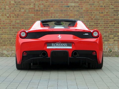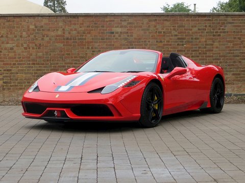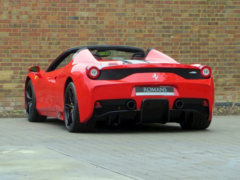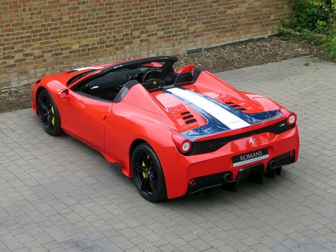 Ā Romans International are proud to offer this Brand New 2015/15 Ferrari 458 Speciale Aperta for sale presented in 'Rosso Scuderia' with Nero Alcantara.Ā This is the firstĀ RHD UKĀ car for sale on the market and is physical and available to buy today.Praised to be a fitting send off for Maranello's most powerful naturally aspirated v8/, the 458 Aperta is the most hardcore v8 roadster the company has ever built. Limited to just 499 examples worldwide/, the Aperta is a timed celebration of the success of the 458 model including an array of international motoring media awards and track victories including category wins in the 24 Hours of Le Mans/, 24 Hours of Daytona and 12 Hours of Sebring.Based on the exquisite 458 Speciale coupe/, the Aperta is a car that combines extreme spine-tingling performance with the pleasure of open top driving. Producing 596bhp and 398 lb ft of torque/, 0 to 62mph is dealt within 3.0 seconds and reaches a top speed of 199mph. These performance figures are sensational but perhaps should not be a surprise as thanks to the aluminium retractable hard top and 10 different aluminium alloys used to increase rigidity; the weight difference compared with the Speciale coupe is only 50kg.Ā Furthermore/, the 4.5 litre v8 is now 8kg lighter than the Speciale thanks to carbon fibre induction plenums and a lighter exhaust. The seven-speed dual clutch gearbox is now even quicker with upshifts performing 20% faster and downshifts 44% faster than before. The car also gets uprated suspension/, a new generation of carbon ceramic brakes shared with the LaFerrari and the latest Michelin Pilot Cup Sport 2 tyres which is a new tread designed to significantly increase wet weather performance.Ā Combined with the racing inspired interior full of carbon fibre and alcantara and bodywork improvements such as the redesigned composite bumpers and two deep air outlets to channel away the air exiting the radiator; the 458 Aperta is the most aerodynamically efficient Ferrari spider ever built. Hence/, the car laps Ferrari's Fiarano test track in 1minute 23.5 seconds which is the same time as the Speciale coupe.Ā There's no doubt that the 458 Aperta is one of the all time great supercar convertibles and with the car's v8 engine having won the three international best Performance Engine awards which is marked by a special plaque in the cabin; it will surely make every journey feel special.Ā Ā