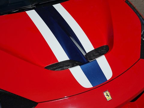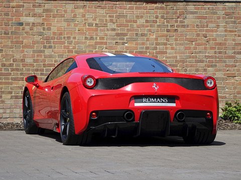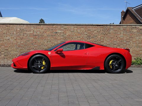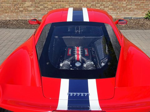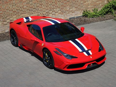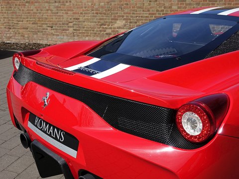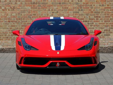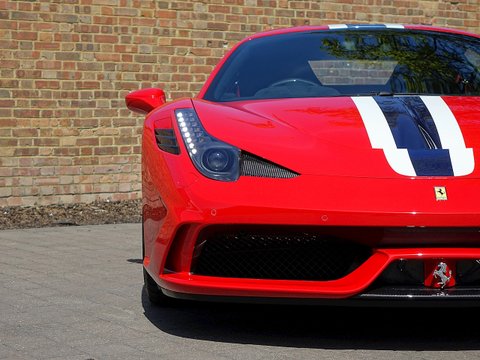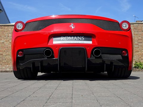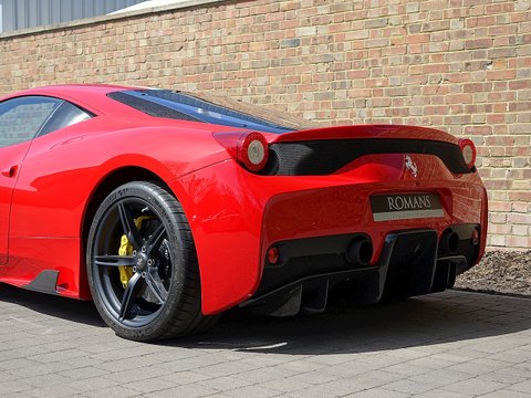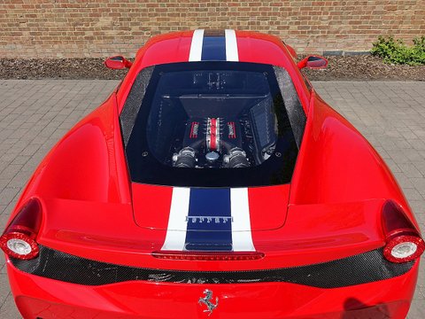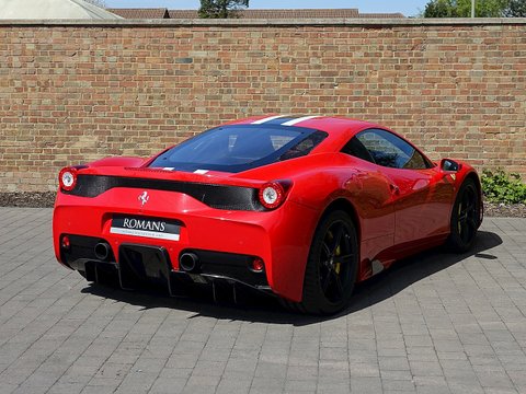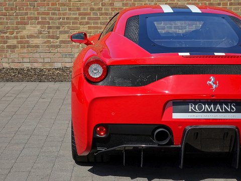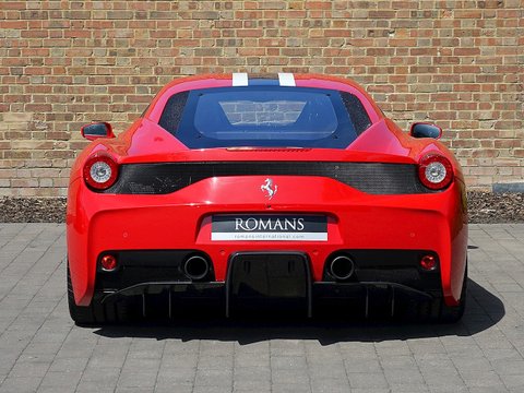 Romans are delighted to offer this spectacular 2015/65 Ferrari 458 Speciale for sale presented in 'Rosso Corsa' with a Blu Nart Racing Stripe and Rosso 3D Fabric and Nera Alcantara Interior. This great example comes with a massive specification including the Carbon Fibre Engine Cover, Carbon Fibre Rear Diffuser and plenty of other Carbon Fibre optional extras. A fine example that is supplied with Ferrari's 7 Year Free Servicing until September 2022 and Ferrari Manufacturer's Warranty until September 2019.The 458 Speciale is one of the most desirable supercars on the market being the last naturally aspirated special edition V8 Ferrari. This example comes with one of the biggest specifications on the market and looks fantastic in one of our favourite colour combinations of Rosso Corsa with the Blu Nart Racing Stripe which was a £6,720 option. Finally, this wonderful car offers a great investment opportunity and it will be a worthy addition to any of the world's best car collections.