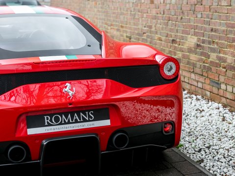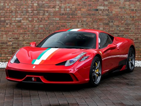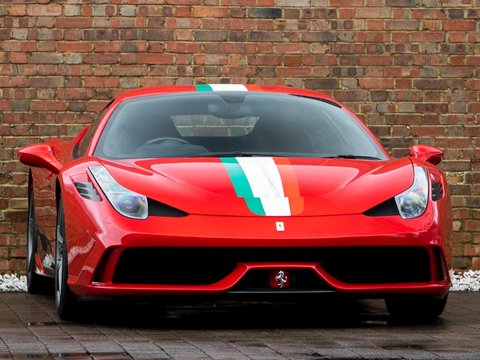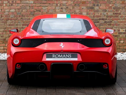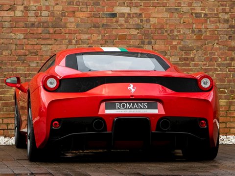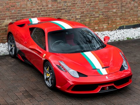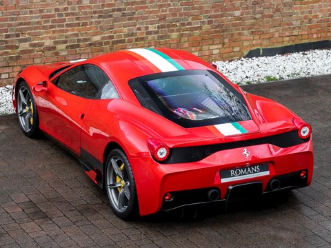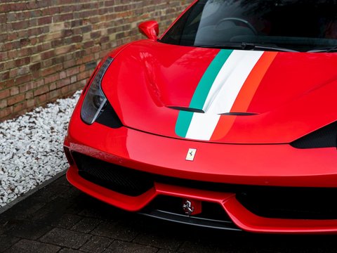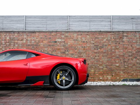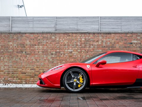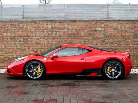 The Ferrari 458 Speciale is the high-performance variant of the already sensational 458 Italia. The Speciale receives a myriad of performance upgrade starting with increased power from the 4.5L V8 jumping to just under 600bhp at 9000rpm. Further distinctions in the body styling include a vented bonnet, finned side sills and front/rear active aerodynamic flaps, to balance downforce and cut drag when required. In addition to revised electronic driver aid systems there is the introduction of side slip angle control (SSC), a system which allows the driver to decide how sideways he/she would like to travel around a corner. All these improvements allow the Speciale to lap the Ferrari Fiorano test track 1.5 seconds faster than its predecessor, the already blisteringly quick F430 Scuderia. Overall this track orientated Ferrari offers awesome performance, show-stopping Italian styling and addictive levels of driver involvement. Being the last special edition naturally aspirated V8 Ferrari makes this car a highly sought after and collectable addition to any investor's or enthusiast's garage.