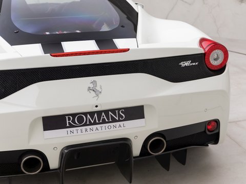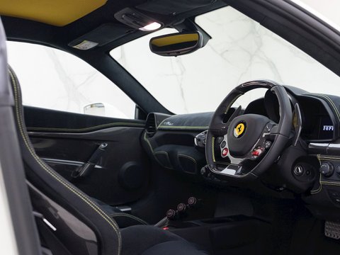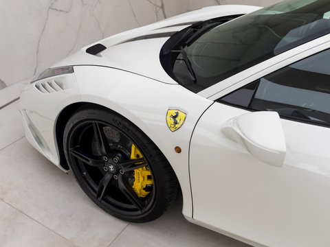 The Ferrari 458 Speciale is the high-performance variant of the already sensational 458 Italia. The Speciale receives a myriad of performance upgrades starting with increased power from the 4.5L V8 jumping to just under 600bhp at 9000rpm. Further distinctions in the body styling include a vented bonnet, finned side sills and front/rear active aerodynamic flaps, to balance downforce and cut drag when required. In addition to revised electronic driver aid systems there is the introduction of side slip angle control (SSC), a system which allows the driver to decide how sideways he/she would like to travel around a corner. All these improvements allow the Speciale to lap the Ferrari Fiorano test track 1.5 seconds faster than its predecessor, the already blisteringly quick 430 Scuderia. Overall this track orientated Ferrari offers awesome performance, show-stopping Italian styling and addictive levels of driver involvement. Being the last special edition naturally aspirated V8 Ferrari, makes this car a highly sought after and collectable addition to any investor's or enthusiast's garage.