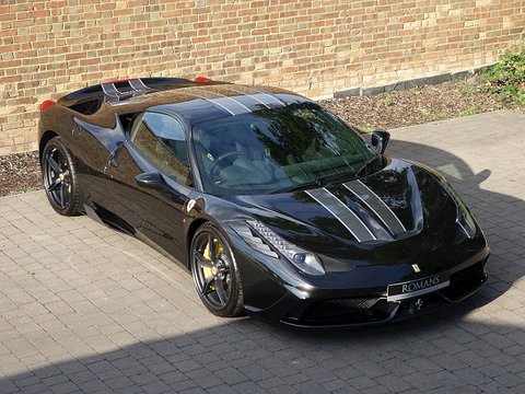Ā Romans are proud to offer this beautiful 2014/14 Ferrari 458 Speciale for sale presented in 'Nero Daytona' with Nero Alcantara Interior. This stunning vehicle comes with a big specification including theĀ Front Suspension Lifter/, Carbon Fibre Rear Diffuser/, Carbon Fibre Engine Bay/, Carbon Fibre Front Flaps and so much more. A fine example that isĀ supplied with Ferrari 7 Year Free Servicing Package untilĀ July 2021Ā and Ferrari Manufacturer's Warranty untilĀ July 2018.