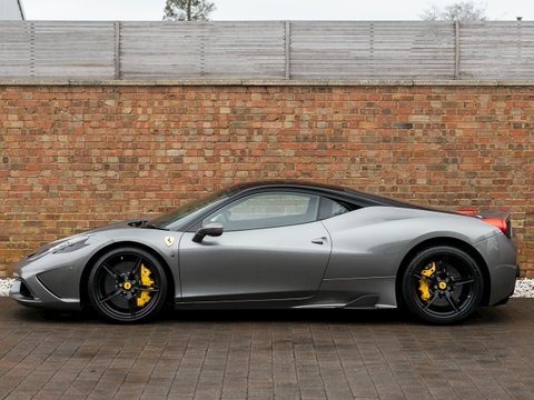 The Ferrari 458 Speciale is the high-performance variant of the already sensational 458 Italia. The Speciale receives a myriad of performance upgrades starting with increased power from the 4.5L V8 jumping to just under 600bhp at 9000rpm. Further distinctions in the body styling include a vented bonnet, finned side sills and front/rear active aerodynamic flaps, to balance downforce and cut drag when required. In addition to revised electronic driver aid systems there is the introduction of side slip angle control (SSC), a system which allows the driver to decide how sideways he/she would like to travel around a corner. All these improvements allow the Speciale to lap the Ferrari Fiorano test track 1.5 seconds faster than its predecessor, the already blisteringly quick 430 Scuderia. Overall this track orientated Ferrari offers awesome performance, show-stopping Italian styling and addictive levels of driver involvement. Being the last special edition naturally aspirated V8 Ferrari, makes this car a highly sought after and collectable addition to any investor's or enthusiast's garage.