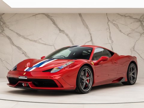 The Ferrari 458 Speciale is the high-performance variant of the already sensational 458 Italia. The Speciale receives a myriad of performance upgrades starting with increased power from the 4.5L V8 jumping to just under 600bhp at 9000rpm. Further distinctions in the body styling include a vented bonnet, finned side sills and front/rear active aerodynamic flaps, to balance downforce and cut drag when required. In addition to revised electronic driver aid systems there is the introduction of side slip angle control (SSC), a system which allows the driver to decide how sideways he/she would like to travel around a corner. All these improvements allow the Speciale to lap the Ferrari Fiorano test track 1.5 seconds faster than its predecessor, the already blisteringly quick 430 Scuderia. Overall this track orientated Ferrari offers awesome performance, show-stopping Italian styling and addictive levels of driver involvement. Being the last special edition naturally aspirated V8 Ferrari, makes this car a highly sought after and collectable addition to any investor's or enthusiast's garage.