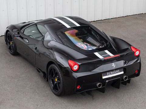 The Ferrari 458 Speciale is the high-performance variant of the already sensational 458 Italia. The Speciale receives a myriad of performance upgrades over the 458 starting with increased power from the 4.5L V8 jumping to just under 600bhp at 9000rpm. Further distinctions in the body styling include a vented bonnet, finned side sills and front/rear active aerodynamic flaps, to balance downforce and cut drag when required. In addition to revised electronic driver aid systems there is the introduction of side slip angle control (SSC), a system which allows the driver to decide how sideways he/she would like to travel around a corner. All these improvements allow the Speciale to lap the Ferrari Fiorano test track 1.5 seconds faster than its predecessor, the already blisteringly quick 430 Scuderia. Overall this track orientated Ferrari offers awesome performance, show-stopping Italian styling and addictive levels of driver involvement. Being the last special edition naturally aspirated V8 Ferrari, makes this car a highly sought after and collectable addition to any investor's or enthusiast's garage.
