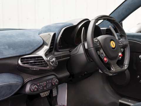 The Ferrari 458 Speciale is the high-performance variant of the already sensational 458 Italia. The Speciale receives a myriad of performance upgrades starting with increased power from the 4.5L V8 jumping to just under 600bhp at 9000rpm. Further distinctions in the body styling include a vented bonnet, finned side sills and front/rear active aerodynamic flaps, to balance downforce and cut drag when required. In addition to revised electronic driver aid systems there is the introduction of side slip angle control (SSC), a system which allows the driver to decide how sideways he/she would like to travel around a corner. All these improvements allow the Speciale to lap the Ferrari Fiorano test track 1.5 seconds faster than its predecessor, the already blisteringly quick 430 Scuderia. Overall this track orientated Ferrari offers awesome performance, show-stopping Italian styling and addictive levels of driver involvement. Being the last special edition naturally aspirated V8 Ferrari, makes this car a highly sought after and collectable addition to any investor's or enthusiast's garage.