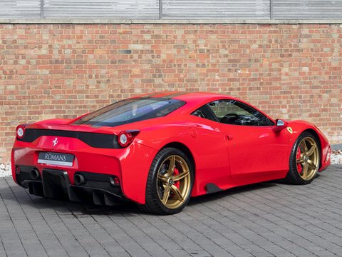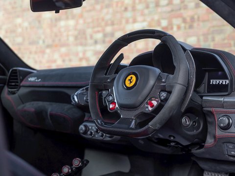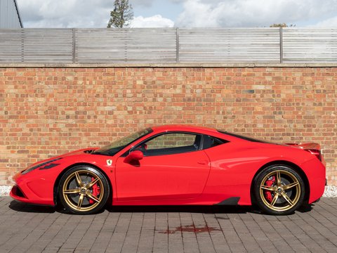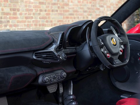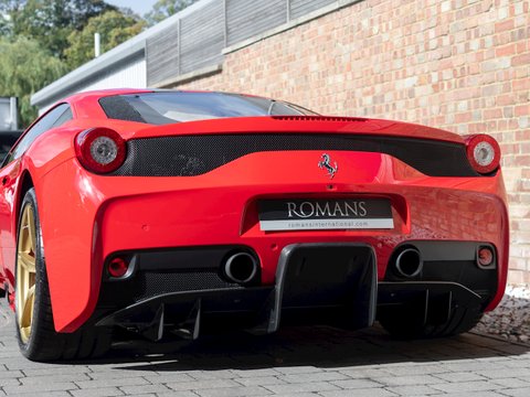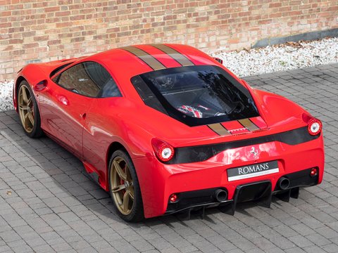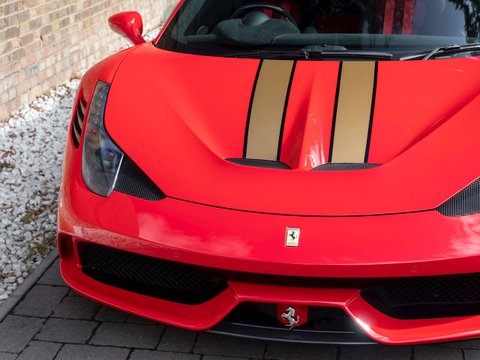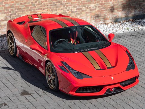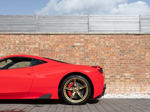 The Ferrari 458 Speciale is the high-performance variant of the already sensational 458 Italia. The Speciale receives a myriad of performance upgrades over the 458 starting with increased power from the 4.5L V8 jumping to just under 600bhp at 9000rpm. Further distinctions in the body styling include a vented bonnet, finned side sills and front/rear active aerodynamic flaps, to balance downforce and cut drag when required. In addition to revised electronic driver aid systems there is the introduction of side slip angle control (SSC), a system which allows the driver to decide how sideways he/she would like to travel around a corner. All these improvements allow the Speciale to lap the Ferrari Fiorano test track 1.5 seconds faster than its predecessor, the already blisteringly quick 430 Scuderia. Overall this track orientated Ferrari offers awesome performance, show-stopping Italian styling and addictive levels of driver involvement. Being the last special edition naturally aspirated V8 Ferrari, makes this car a highly sought after and collectable addition to any investor's or enthusiast's garage.