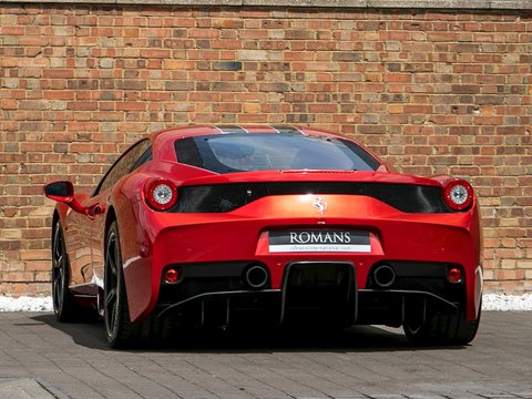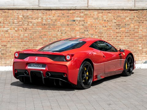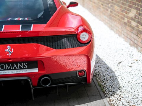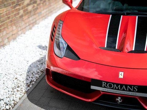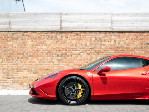 The Ferrari 458 Speciale is the high-performance variant of the already sensational 458 Italia. The Speciale receives a myriad of performance upgrade starting with increased power from the 4.5L V8 jumping to just under 600bhp at 9000rpm. Further distinctions in the body styling include a vented bonnet, finned side sills and front/rear active aerodynamic flaps, to balance downforce and cut drag when required. In addition to revised electronic driver aid systems there is the introduction of side slip angle control (SSC), a system which allows the driver to decide how sideways he/she would like to travel around a corner. All these improvements allow the Speciale to lap the Ferrari Fiorano test track 1.5 seconds faster than its predecessor, the already blisteringly quick F430 Scuderia. Overall this track orientated Ferrari offers awesome performance, show-stopping Italian styling and addictive levels of driver involvement. Being the last special edition V8 Ferrari makes this car a highly sought after and collectable addition to any investor's or enthusiast's garage.