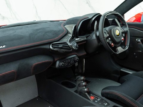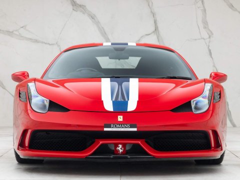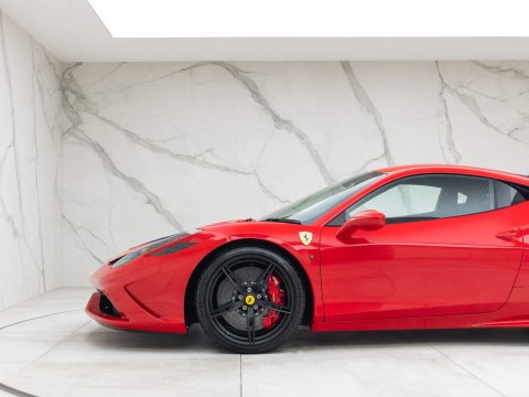 The Ferrari 458 Speciale is the high-performance variant of the already sensational 458 Italia. The Speciale receives a myriad of performance upgrade starting with increased power from the 4.5L V8 jumping to just under 600bhp at 9000rpm. Further distinctions in the body styling include a vented bonnet, finned side sills and front/rear active aerodynamic flaps, to balance downforce and cut drag when required. In addition to revised electronic driver aid systems there is the introduction of side slip angle control (SSC), a system which allows the driver to decide how sideways he/she would like to travel around a corner. All these improvements allow the Speciale to lap the Ferrari Fiorano test track 1.5 seconds faster than its predecessor, the already blisteringly quick F430 Scuderia. Overall this track orientated Ferrari offers awesome performance, show-stopping Italian styling and addictive levels of driver involvement. Being the last special edition naturally aspirated V8 Ferrari makes this car a highly sought after and collectable addition to any investor's or enthusiast's garage.