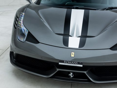 The Ferrari 458 Speciale is the high-performance variant of the already sensational 458 Italia. The Speciale receives a myriad of performance upgrades starting with increased power from the 4.5L V8 jumping to just under 600bhp at 9000rpm. Further distinctions in the body styling include a vented bonnet, finned side sills and front/rear active aerodynamic flaps, to balance downforce and cut drag when required. In addition to revised electronic driver aid systems there is the introduction of side slip angle control (SSC), a system which allows the driver to decide how sideways he/she would like to travel around a corner. All these improvements allow the Speciale to lap the Ferrari Fiorano test track 1.5 seconds faster than its predecessor, the already blisteringly quick 430 Scuderia. Overall this track orientated Ferrari offers awesome performance, show-stopping Italian styling and addictive levels of driver involvement. Being the last special edition naturally aspirated V8 Ferrari, makes this car a highly sought after and collectable addition to any investor's or enthusiast's garage.