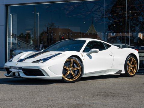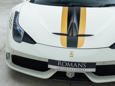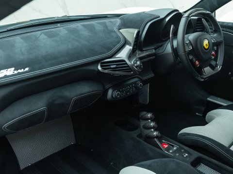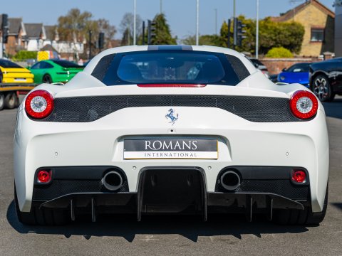 The Ferrari 458 Speciale is the high-performance variant of the already sensational 458 Italia. The Speciale receives a myriad of performance upgrades starting with increased power from the 4.5L V8 jumping to just under 600bhp at 9000rpm. Further distinctions in the body styling include a vented bonnet, finned side sills and front/rear active aerodynamic flaps, to balance downforce and cut drag when required. In addition to revised electronic driver aid systems there is the introduction of side slip angle control (SSC), a system which allows the driver to decide how sideways he/she would like to travel around a corner. All these improvements allow the Speciale to lap the Ferrari Fiorano test track 1.5 seconds faster than its predecessor, the already blisteringly quick 430 Scuderia. Overall this track orientated Ferrari offers awesome performance, show-stopping Italian styling and addictive levels of driver involvement. Being the last special edition naturally aspirated V8 Ferrari, makes this car a highly sought after and collectable addition to any investor's or enthusiast's garage.