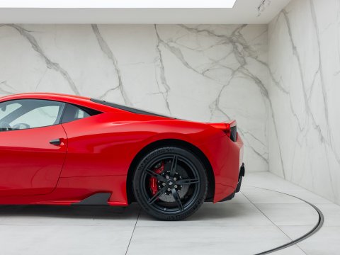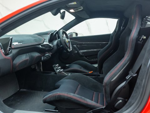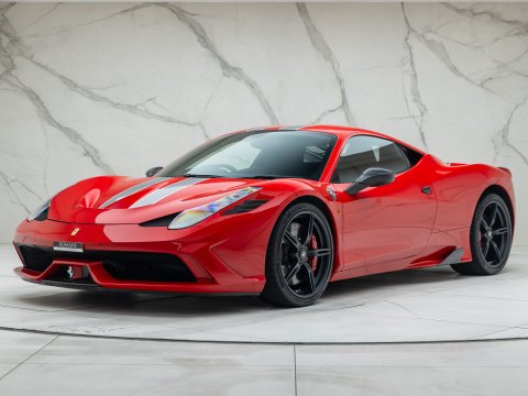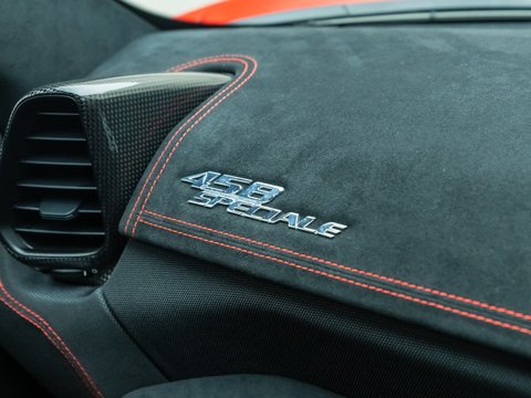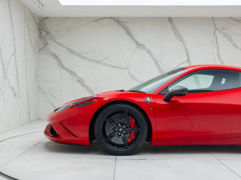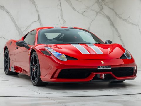 The Ferrari 458 Speciale is the high-performance variant of the already sensational 458 Italia. The Speciale receives a myriad of performance upgrades starting with increased power from the 4.5L V8 jumping to just under 600bhp at 9000rpm. Further distinctions in the body styling include a vented bonnet, finned side sills and front/rear active aerodynamic flaps, to balance downforce and cut drag when required. In addition to revised electronic driver aid systems there is the introduction of side slip angle control (SSC), a system which allows the driver to decide how sideways he/she would like to travel around a corner. All these improvements allow the Speciale to lap the Ferrari Fiorano test track 1.5 seconds faster than its predecessor, the already blisteringly quick 430 Scuderia. Overall this track orientated Ferrari offers awesome performance, show-stopping Italian styling and addictive levels of driver involvement. Being the last special edition naturally aspirated V8 Ferrari, makes this car a highly sought after and collectable addition to any investor's or enthusiast's garage.