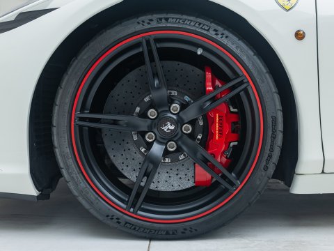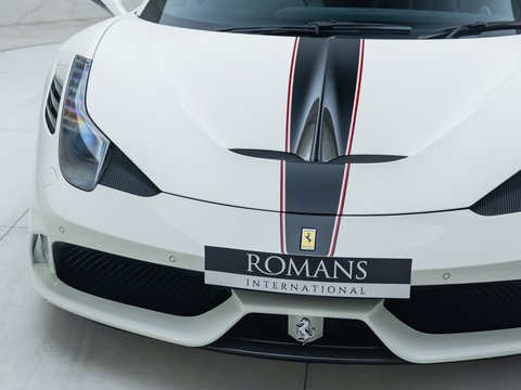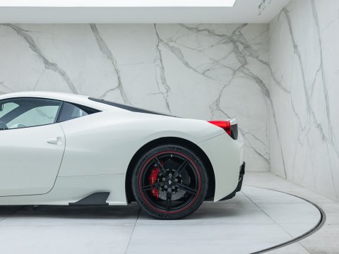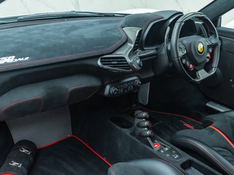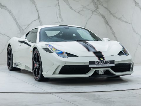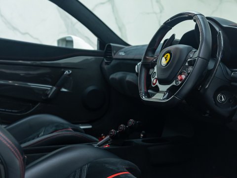 The Ferrari 458 Speciale is the high-performance variant of the already sensational 458 Italia. The Speciale receives a myriad of performance upgrades starting with increased power from the 4.5L V8 jumping to just under 600bhp at 9000rpm. Further distinctions in the body styling include a vented bonnet, finned side sills and front/rear active aerodynamic flaps, to balance downforce and cut drag when required. In addition to revised electronic driver aid systems there is the introduction of side slip angle control (SSC), a system which allows the driver to decide how sideways he/she would like to travel around a corner. All these improvements allow the Speciale to lap the Ferrari Fiorano test track 1.5 seconds faster than its predecessor, the already blisteringly quick 430 Scuderia. Overall this track orientated Ferrari offers awesome performance, show-stopping Italian styling and addictive levels of driver involvement. Being the last special edition naturally aspirated V8 Ferrari, makes this car a highly sought after and collectable addition to any investor's or enthusiast's garage.