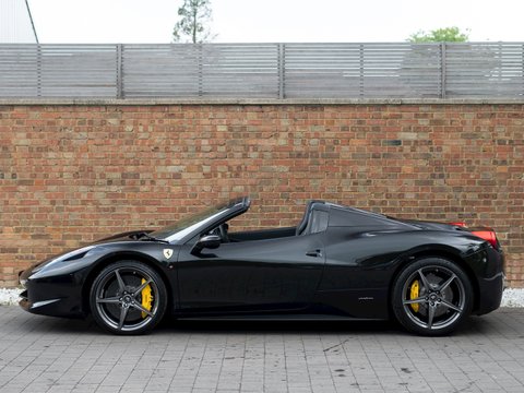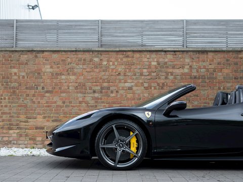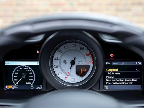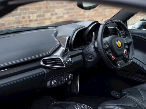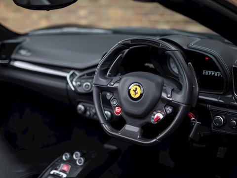 Using Formula 1 technology the 458 features vastly improved aerodynamics without making any aesthetic sacrifices, in fact it has been acknowledged as one of the most attractive Ferraris in recent memory. This car manages to be both thrilling to drive and incredibly accessible, combining brilliant handling, superb levels of grip and ferocious acceleration. The cabin is totally driver focused with most controls easily accessible from the steering wheel, combined with a huge range of bespoke trim and detailing adding to the sense of occasion and individuality. Ceramic brakes come as standard as does a 4-year manufacturer warranty, whilst a 7-year service plan was introduced in 2011 making the 458 Spider one of the most desirable supercars for sale today and earning it a well-deserved place in Ferrariās illustrious history.