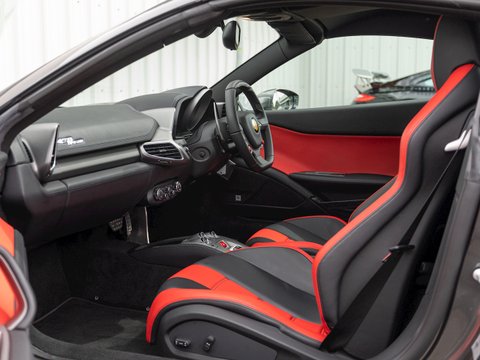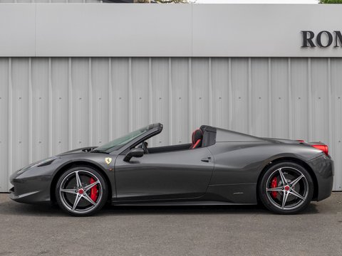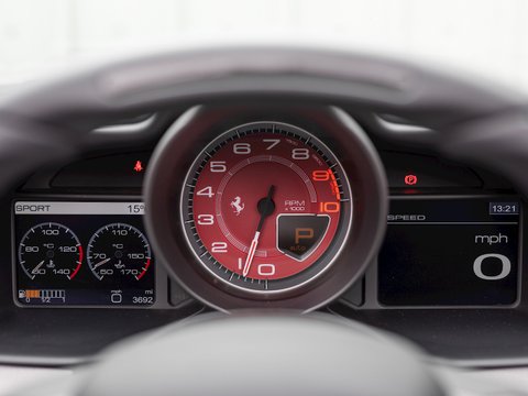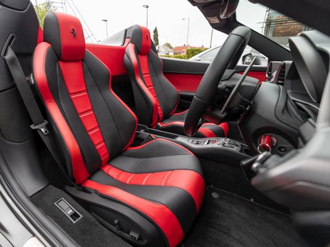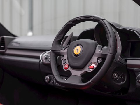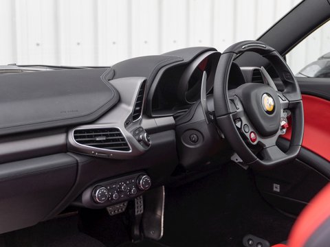 Using Formula 1 technology the 458 features vastly improved aerodynamics without making any aesthetic sacrifices, in fact it has been acknowledged as one of the most attractive Ferraris in recent memory. This car manages to be both thrilling to drive and incredibly accessible, combining brilliant handling, superb levels of grip and ferocious acceleration. The cabin is totally driver focused with most controls easily accessible from the steering wheel, combined with a huge range of bespoke trim and detailing adding to the sense of occasion and individuality. The singing naturally aspirated V8 combined with the convertible roof makes the 458 Spider one of the most desirable supercars for sale today and earning it a well-deserved place in Ferrariās illustrious history.