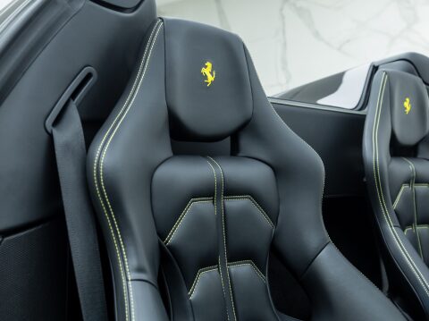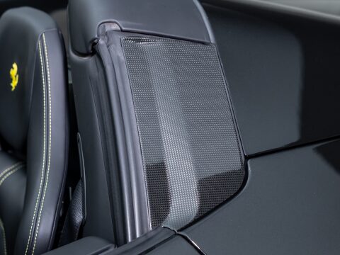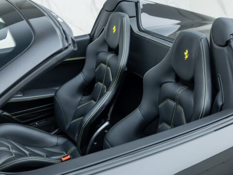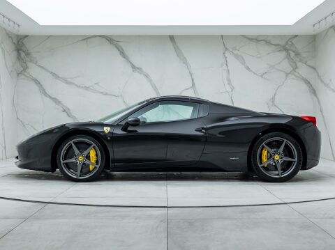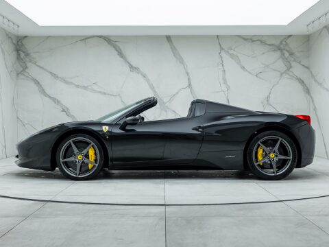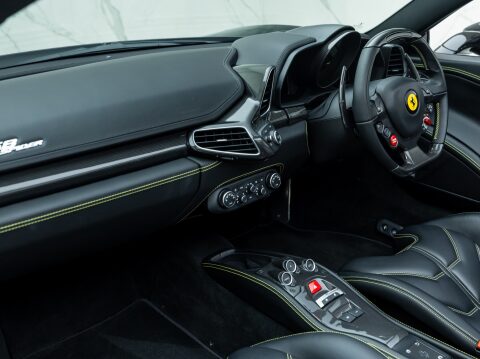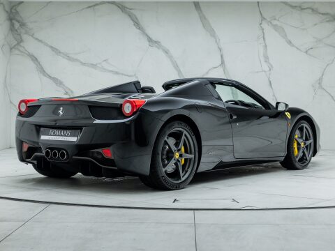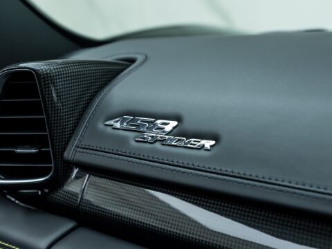 Using Formula 1 technology the 458 features vastly improved aerodynamics without making any aesthetic sacrifices, in fact it has been acknowledged as one of the most attractive Ferraris in recent memory. This car manages to be both thrilling to drive and incredibly accessible, combining brilliant handling, superb levels of grip and ferocious acceleration. The cabin is totally driver focused with most controls easily accessible from the steering wheel, combined with a huge range of bespoke trim and detailing adding to the sense of occasion and individuality. The singing naturally aspirated V8 combined with the convertible roof makes the 458 Spider one of the most desirable supercars for sale today and earning it a well-deserved place in Ferrariās illustrious history.