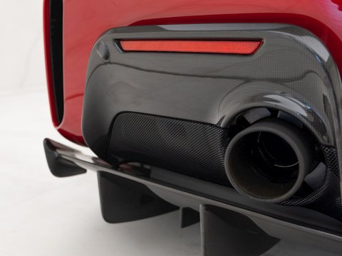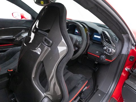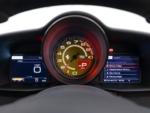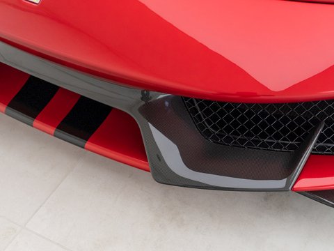 This specific example is a 'Tailor Made' car - which allowed complete personalisation with the specification when the car was first built for the original owner. This has resulted in one of the best-specced Pistas we've ever seen here at Romans - with almost every single carbon fibre option being added (including carbon fibre wheels), totalling roughly £34,000. This car also comes with a Novitec exhaust system which just adds to the drama and racing car-feel that is already so prominent when driving the 488 Pista. The exhaust system includes a remote, allowing the driver to control the valves and therefore the noise level of the exhaust. The stunning triple-layer special Rosso Coburn paint is an £18k option in itself and contrasts perfectly against the Nero interior and optional Carbon Fibre Wheels.