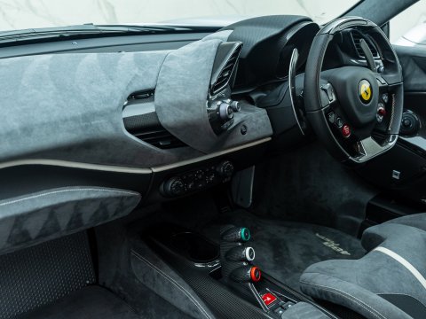 The Ferrari 488 Pista is the last in a long line of phenomenal hardcore track orientated versions of Ferrari’s V8 supercars. Following in the footsteps of legends such as the 430 Scuderia & the 458 Speciale except this time there is one major difference, the 488 Pista is turbocharged. Some Ferrari purists will turn their noses up at a turbocharged Ferrari, conveniently forgetting about the legendary F40, but the truth is these days the dark art of turbocharging at this level has significantly evolved and simply yields hugely powerful and torquey powertrains with beautifully linear delivery. The 488 Pista does not simply run a tweaked or boosted version of the GTB engine and instead uses the full-fat version from the 488 Challenge race car. One of the main differences in this engine are the lighted all titanium internals, making it spool quicker and feel all the more naturally aspirated in the way it revs. All this power and torque gives mind-bending straight-line performance with a 0-125mph time of just 7.5 seconds, a sniff slower than the LaFerrari!