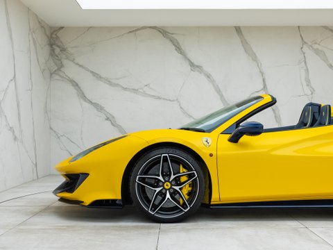 The 488 Pista Spider is the 50th open top model produced by Ferrari and is their highest performing Spider ever produced. Capitalising on the successful Pista coupe, the Spider provides the driver with the addition of open air thrills, amplifying the sense of speed and invigorating the senses. The drop-top experience is further enhanced by the increased ability to hear the aggressive twin-turbo V8 soundtrack, which is unmistakable and unique.