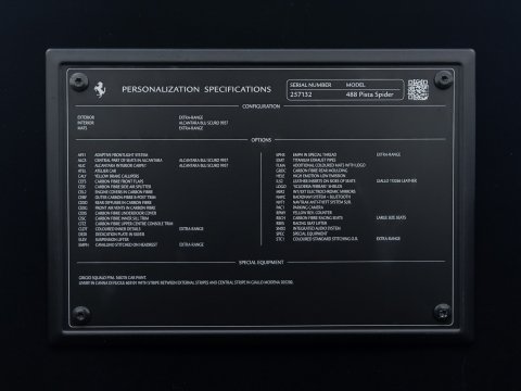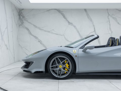 The 488 Pista Spider is the 50th open top model produced by Ferrari and potentially one of their last special edition drop-tops to feature a pure combustion V8 engine. Capitalising on the successful Pista coupe, the Spider provides the driver with the addition of open air thrills, amplifying the sense of speed and invigorating the senses. The drop-top experience is further enhanced by the increased ability to hear the powerful and distinctive twin-turbo V8 soundtrack delivering a thrilling auditory experience.