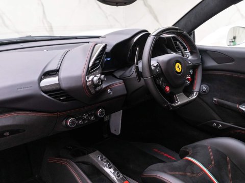 Bianco Italia Triple-Layer Paint with Nero Leather & Alcantara Interior - Very High Spec Example - Including Carbon Fibre Racing Pack (£8,640) & Goldrake Carbon Fibre Racing Seats (£5,184) - Paint Protection Film (PPF) Applied to Front End + A-Pillars + Side Sills - Ferrari 7 Year Servicing Package until August 2024 - Ferrari Manufacturer’s Warranty until August 2023 - UK SuppliedOptional Extras:20-Inch Forged Alloy Wheels Painted in Matt BlackBianco Italia Triple Layer PaintRosso Bandiera + Bianco Avus + Verde Bandiera Italian Flag Painted StripeGoldrake Carbon Fibre Racing SeatsCarbon Fibre Racing Package (Including: Carbon Fibre Driver Zone + LEDs + Carbon Fibre Tunnel Bridge + Carbon Fibre Dashboard Inserts)Carbon Fibre Side Air SplitterCarbon Fibre Engine CoversCarbon Fibre Underdoor CoversCarbon Fibre Exterior Sill KickCarbon Fibre Rear Air DuctsCarbon Fibre Fog LampCarbon Fibre Wheel Centre CapsNera Alcantara & Leather InteriorSuspension LifterTricolore Leather Central Stripe on SeatsEmbroidered Prancing Horse Stitched to Headrests in RossoAdaptive Frontlight SystemRacing Seat LifterSport Exhaust System‘SCUDERIA FERRARI’ Shields on FendersRosso Brake CalipersInterior & Exterior Electrochromic MirrorsRear Parking CameraFront & Rear Parking SensorBianco Rev CounterRosso Special StitchingNera Alcantara Upper Passenger CompartmentPaint Protection Film (PPF) Applied to Front End + A-Pillars + Side SillsStandard Features:Bi-Xenon HeadlampsBluetooth Audio StreamingCCM (Carbon-Ceramic Brake System)Digital Radio System (DAB)Dual Zone Air Conditioning SystemE-Diff3 (Evolution Of Electronic Differential)Engine Start Button on Steering WheelF1-Trac (Traction Control System)Infotelematic SystemKeyless StartRace ManettinoSCM2 (MagneRide Shock Absorber System)Tyre Pressure & Temperature Monitoring System