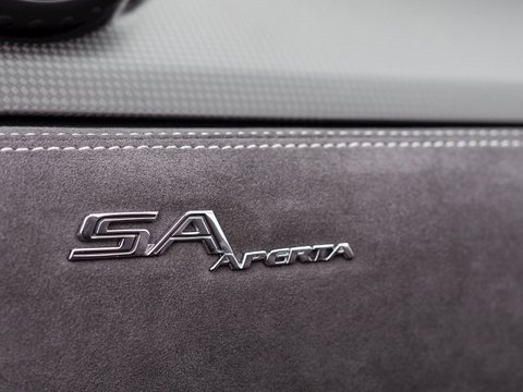 This SA Aperta was fully upgraded to GTO specification by Zanasi including full exhaust, brakes, exposed carbon fibre GTO side skirts, GTO front bumper with GTO grilles, rear bumper and diffuser. The optional carbon fibre roof panel was painted, along with the windscreen surround and buttresses in Grigio Silverstone Opaco as per the 599 GTO it was modelled on, similarly, the headlight buckets are painted in the same hue, away from the standard light cluster the SA Aperta traditionally shares with the standard 599 GTB.