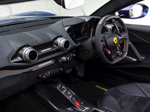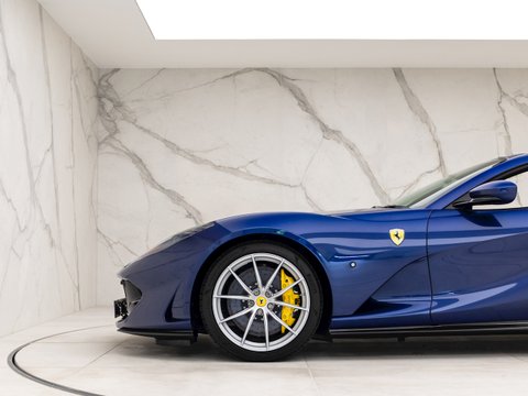 In terms of the chassis, suspension and technology the 812 Superfast feels remarkably similar to the F12tdf, which is no bad thing. Active aerodynamic flaps in the front splitter and the rear diffuser allow the 812 to develop incredible levels of active downforce without the need for a large rear wing ruining the flowing lines of the car. This is coupled with the welcome addition of four-wheel steering, giving the 812 the agility and feeling of a car with a much shorter wheelbase. Other highlight systems which have been evolved include the SSC5 (Side Slip Control 5.0) and Dual Coil MagneRide shock absorbers plus the introduction of an electronically assisted steering rack, allowing for more precise adjustments to steering feel and rate. All these different performance enhancing technologies are constantly working together to provide the optimum driving experience dependent on what mode has been selected through the F1 inspired Manettino race switch. The interior has also been enhanced and restyled over the F12 and remains one of the most driver focused and truly special interiors on the market.