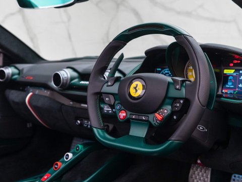 Very High Specification - Rare Verde Scuro Paint (£15,360) - Including Green Carbon Fibre Options Totalling over £70k & 'Scuderia Ferrari' Shields (£8,160) - Full Paint Protection Film (PPF) - Ferrari Manufacturer's Warranty until March 2025 - Ultra-Low Mileage - UK SuppliedOptional Extras:20” Forged Racing Wheels Painted in Matt Canna Di FucileVerde Scuro Metallic PaintAirbrushed Ferrari Shields on FendersAdaptive Frontlight System with SBL FunctionNera Alcantara CarpetNera Alcantara Seat CentresNero Brake CalipersAll Exterior Carbon Fibre in Matt FinishAll Interior Carbon Fibre in Matt FinishCarbon Fibre Engine CoversCarbon Fibre Filter Box CoverCarbon Fibre Rear Bench TrimCarbon Fibre Front Bumper InsertsCarbon Fibre Racing SeatsCarbon Fibre Rear Bumper SidesCarbon Fibre Rear DiffuserCarbon Fibre Underdoor CoverCarbon Fibre Inner Door HandleCarbon Fibre Driver Zone + LEDsCarbon Fibre Central BridgeCarbon Fibre Door PanelsCarbon Fibre Exterior Sill KickCarbon Fibre Upper Tunnel TrimCarbon Fibre Wheel Centre CapsCarbon Fibre Dashboard InsertsApple CarPlayVerde Leather Inserts on Seat SidesTricolore F1 Button HousingsNera Alcantara Lower DashboardInner Seat Stripe in Tricolore LeatherGlove Compartment Stripe in Tricolore LeatherSuspension LifterEmbroidered Prancing Horse Stitched to Headrests in VerdeBlack Ceramic Exhaust PipesCarbon Fibre Front SpoilerPassenger DisplayAlcantara Parcel ShelfGiallo Rev CounterAlcantara Rear WallJBL High Power Hi-Fi SystemColoured Special StitchingSurround View CameraAlcantara Upper PartItalian Seat Stripes'SCUDERIA FERRARI’ Shields on FendersPrancing Horse in Satin SilverLong Thin Italian Flag on BootlidDashboard Air VentsFlat Insert on SeatsDreamline Exterior BadgeStandard Features:7-Speed F1 DCT TransmissionBluetooth Audio StreamingCCM (Carbon-Ceramic Brake System)CST with F1-TracDigital Radio System (DAB)Dual Zone Air Conditioning SystemDual-Coil SCM-E (MagneRide Shock Absorber System)E-Diff3 (Evolution Of Electronic Differential)Engine Start Button on Steering Wheel