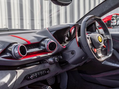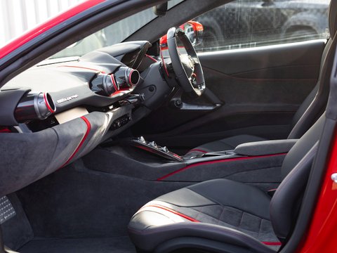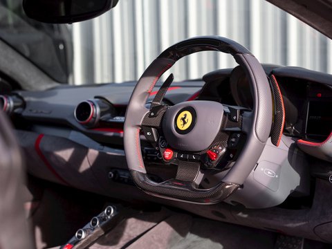 In terms of the chassis, suspension and technology the 812 Superfast feels remarkably similar to the F12tdf, which is no bad thing. Active aerodynamic flaps in the front splitter and the rear diffuser allow the 812 to develop incredible levels of active downforce without the need for a large rear wing ruining the flowing lines of the car. This is coupled with the welcome addition of four-wheel steering, giving the 812 the agility and feeling of a car with a much shorter wheelbase. Other highlight systems which have been evolved include the SSC5 (Side Slip Control 5.0) and Dual Coil MagneRide shock absorbers plus the introduction of an electronically assisted steering rack, allowing for more precise adjustments to steering feel and rate. All these different performance enhancing technologies are constantly working together to provide the optimum driving experience dependent on what mode has been selected through the F1 inspired Manettino race switch. The interior has also been enhanced and restyled over the F12 and remains one of the most driver focused and truly special interiors on the market.