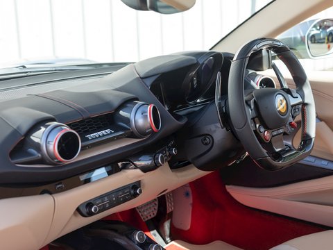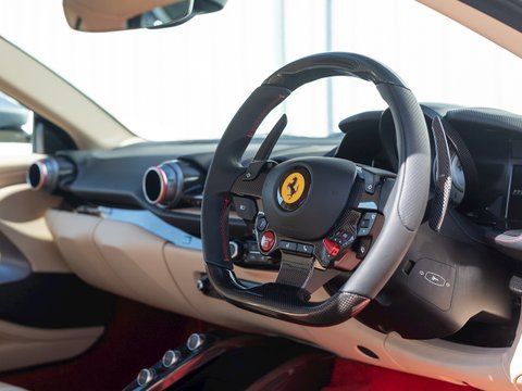 In terms of the chassis, suspension and technology the 812 Superfast feels remarkably similar to the F12tdf, which is no bad thing. Active aerodynamic flaps in the front splitter and the rear diffuser allow the 812 to develop incredible levels of active downforce without the need for a large rear wing ruining the flowing lines of the car. This is coupled with the welcome addition of four-wheel steering, giving the 812 the agility and feeling of a car with a much shorter wheelbase. Other highlight systems which have been evolved include the SSC5 (Side Slip Control 5.0) and Dual Coil MagneRide shock absorbers plus the introduction of an electronically assisted steering rack, allowing for more precise adjustments to steering feel and rate. All these different performance enhancing technologies are constantly working together to provide the optimum driving experience dependent on what mode has been selected through the F1 inspired Manettino race switch. The interior has also been enhanced and restyled over the F12 and remains one of the most driver focused and truly special interiors on the market.
