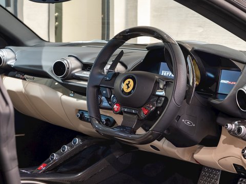 In terms of the chassis, suspension and technology the 812 Superfast feels remarkably similar to the F12tdf, which is no bad thing. Active aerodynamic flaps in the front splitter and the rear diffuser allow the 812 to develop incredible levels of active downforce without the need for a large rear wing ruining the flowing lines of the car. This is coupled with the welcome addition of four-wheel steering, giving the 812 the agility and feeling of a car with a much shorter wheelbase. Other highlight systems which have been evolved include the SSC5 (Side Slip Control 5.0) and Dual Coil MagneRide shock absorbers plus the introduction of an electronically assisted steering rack, allowing for more precise adjustments to steering feel and rate. All these different performance enhancing technologies are constantly working together to provide the optimum driving experience dependent on what mode has been selected through the F1 inspired Manettino race switch. The interior has also been enhanced and restyled over the F12 and remains one of the most driver focused and truly special interiors on the market.