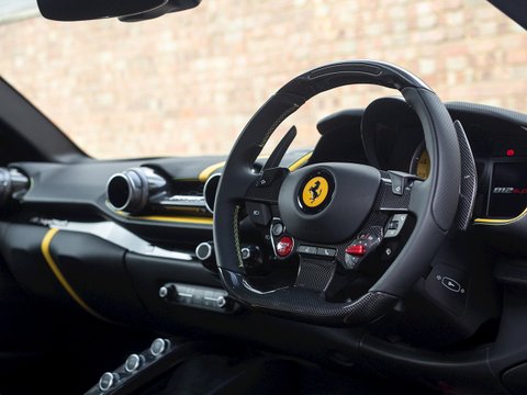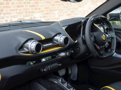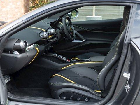 In terms of the chassis, suspension and technology the 812 Superfast feels remarkably similar to the F12tdf, which is no bad thing. Active aerodynamic flaps in the front splitter and the rear diffuser allow the 812 to develop incredible levels of active downforce without the need for a large rear wing ruining the flowing lines of the car. This is coupled with the welcome addition of four-wheel steering, giving the 812 the agility and feeling of a car with a much shorter wheelbase. Other highlight systems which have been evolved include the SSC5 (Side Slip Control 5.0) and Dual Coil MagneRide shock absorbers plus the introduction of an electronically assisted steering rack, allowing for more precise adjustments to steering feel and rate. All these different performance enhancing technologies are constantly working together to provide the optimum driving experience dependent on what mode has been selected through the F1 inspired Manettino race switch. The interior has also been enhanced and restyled over the F12 and remains one of the most driver focused and truly special interiors on the market.