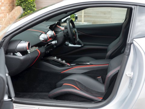 In terms of the chassis, suspension and technology the 812 Superfast feels remarkably similar to the F12tdf, which is no bad thing. Active aerodynamic flaps in the front splitter and the rear diffuser allow the 812 to develop incredible levels of active downforce without the need for a large rear wing ruining the flowing lines of the car. This is coupled with the welcome addition of four-wheel steering, giving the 812 the agility and feeling of a car with a much shorter wheelbase. Other highlight systems which have been evolved include the SSC5 (Side Slip Control 5.0) and Dual Coil MagneRide shock absorbers plus the introduction of an electronically assisted steering rack, allowing for more precise adjustments to steering feel and rate. All these different performance enhancing technologies are constantly working together to provide the optimum driving experience dependent on what mode has been selected through the F1 inspired Manettino race switch. The interior has also been enhanced and restyled over the F12 and remains one of the most driver focused and truly special interiors on the market.