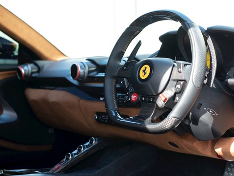 In terms of the chassis, suspension and technology the 812 Superfast feels remarkably similar to the F12tdf, which is no bad thing. Active aerodynamic flaps in the front splitter and the rear diffuser allow the 812 to develop incredible levels of active downforce without the need for a large rear wing ruining the flowing lines of the car. This is coupled with the welcome addition of four-wheel steering, giving the 812 the agility and feeling of a car with a much shorter wheelbase. Other highlight systems which have been evolved include the SSC5 (Side Slip Control 5.0) and Dual Coil MagneRide shock absorbers plus the introduction of an electronically assisted steering rack, allowing for more precise adjustments to steering feel and rate. All these different performance enhancing technologies are constantly working together to provide the optimum driving experience dependent on what mode has been selected through the F1 inspired Manettino race switch. The interior has also been enhanced and restyled over the F12 and remains one of the most driver focused and truly special interiors on the market.