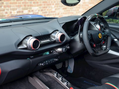 In terms of the chassis, suspension and technology the 812 Superfast feels remarkably similar to the F12tdf, which is no bad thing. Active aerodynamic flaps in the front splitter and the rear diffuser allow the 812 to develop incredible levels of active downforce without the need for a large rear wing ruining the flowing lines of the car. This is coupled with the welcome addition of four-wheel steering, giving the 812 the agility and feeling of a car with a much shorter wheelbase. Other highlight systems which have been evolved include the SSC5 (Side Slip Control 5.0) and Dual Coil MagneRide shock absorbers plus the introduction of an electronically assisted steering rack, allowing for more precise adjustments to steering feel and rate. All these different performance enhancing technologies are constantly working together to provide the optimum driving experience dependent on what mode has been selected through the F1 inspired Manettino race switch. The interior has also been enhanced and restyled over the F12 and remains one of the most driver focused and truly special interiors on the market.