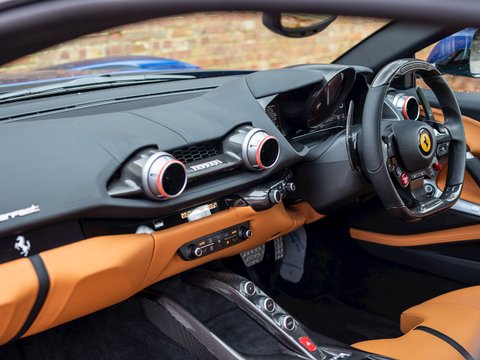 In terms of the chassis, suspension and technology the 812 Superfast feels remarkably similar to the F12tdf, which is no bad thing. Active aerodynamic flaps in the front splitter and the rear diffuser allow the 812 to develop incredible levels of active downforce without the need for a large rear wing ruining the flowing lines of the car. This is coupled with the welcome addition of four-wheel steering, giving the 812 the agility and feeling of a car with a much shorter wheelbase. Other highlight systems which have been evolved include the SSC5 (Side Slip Control 5.0) and Dual Coil MagneRide shock absorbers plus the introduction of an electronically assisted steering rack, allowing for more precise adjustments to steering feel and rate. All these different performance enhancing technologies are constantly working together to provide the optimum driving experience dependent on what mode has been selected through the F1 inspired Manettino race switch. The interior has also been enhanced and restyled over the F12 and remains one of the most driver focused and truly special interiors on the market.