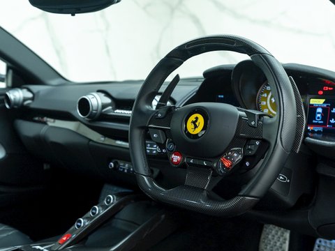 In terms of the chassis, suspension and technology the 812 Superfast feels remarkably similar to the F12tdf, which is no bad thing. Active aerodynamic flaps in the front splitter and the rear diffuser allow the 812 to develop incredible levels of active downforce without the need for a large rear wing ruining the flowing lines of the car. This is coupled with the welcome addition of four-wheel steering, giving the 812 the agility and feeling of a car with a much shorter wheelbase. Other highlight systems which have been evolved include the SSC5 (Side Slip Control 5.0) and Dual Coil MagneRide shock absorbers plus the introduction of an electronically assisted steering rack, allowing for more precise adjustments to steering feel and rate. All these different performance enhancing technologies are constantly working together to provide the optimum driving experience dependent on what mode has been selected through the F1 inspired Manettino race switch. The interior has also been enhanced and restyled over the F12 and remains one of the most driver focused and truly special interiors on the market.