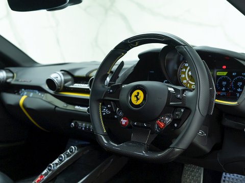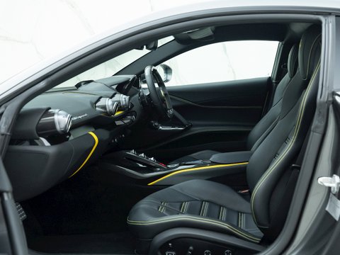 In terms of the chassis, suspension and technology the 812 Superfast feels remarkably similar to the F12tdf, which is no bad thing. Active aerodynamic flaps in the front splitter and the rear diffuser allow the 812 to develop incredible levels of active downforce without the need for a large rear wing ruining the flowing lines of the car. This is coupled with the welcome addition of four-wheel steering, giving the 812 the agility and feeling of a car with a much shorter wheelbase. Other highlight systems which have been evolved include the SSC5 (Side Slip Control 5.0) and Dual Coil MagneRide shock absorbers plus the introduction of an electronically assisted steering rack, allowing for more precise adjustments to steering feel and rate. All these different performance enhancing technologies are constantly working together to provide the optimum driving experience dependent on what mode has been selected through the F1 inspired Manettino race switch. The interior has also been enhanced and restyled over the F12 and remains one of the most driver focused and truly special interiors on the market.